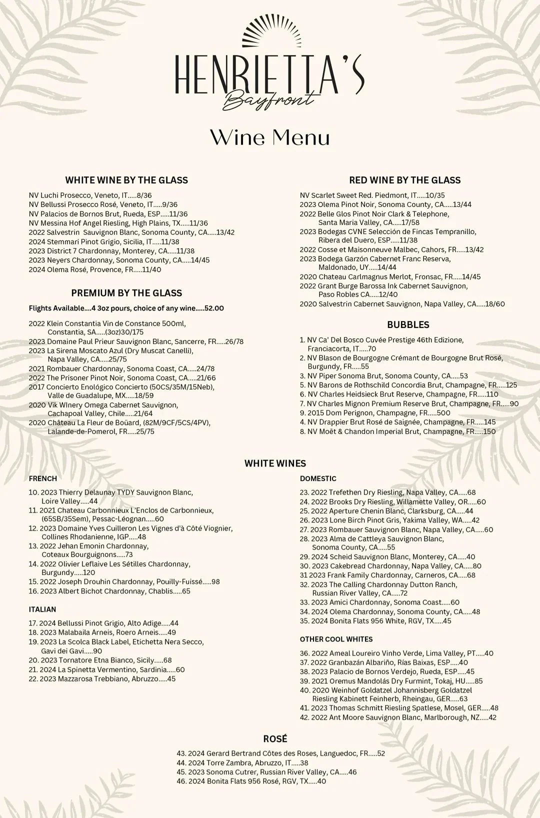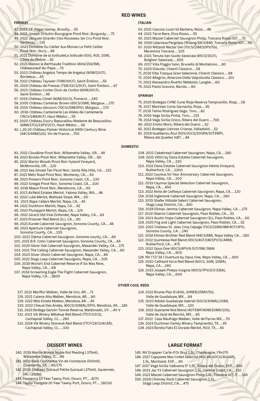 Wine Menu